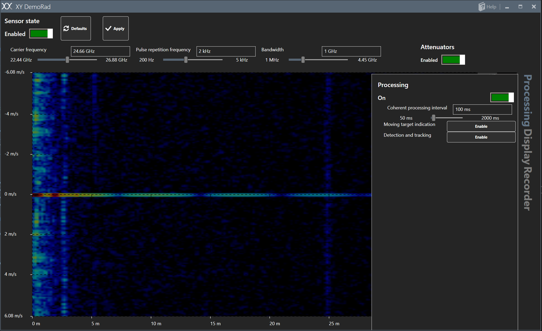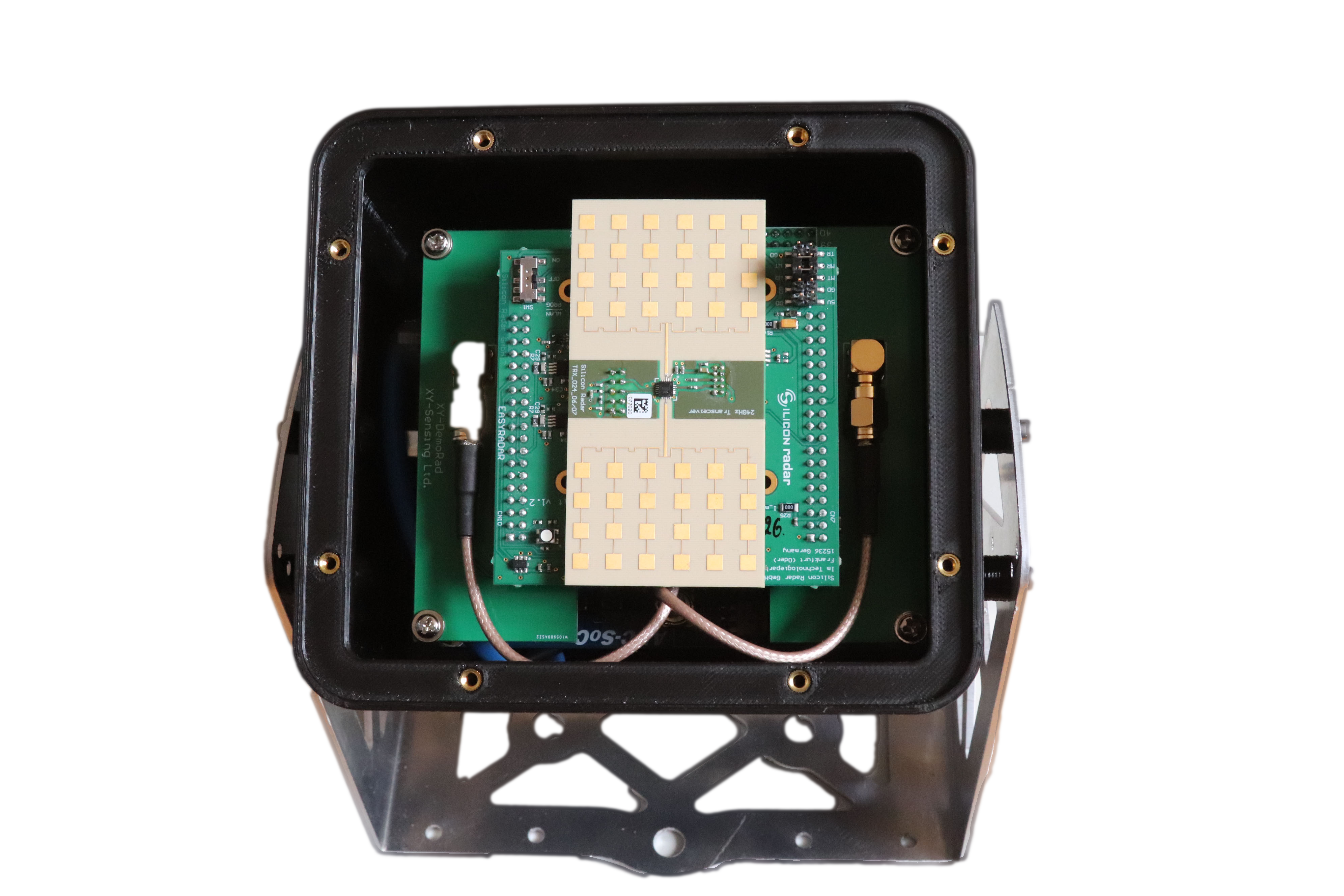 XY-DemoRad is an FMCW (High resolution Frequency-Modulated Continuous-Wave) radar with LFM (Linear Frequency Modulation) waveform. XY-DemoRad allows for accessing the raw IF signal data, which may be stored on the hard-drive of your PC for further processing or processed on-line. Both tasks may be accomplished using included Windows application.